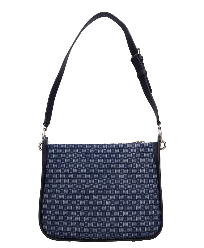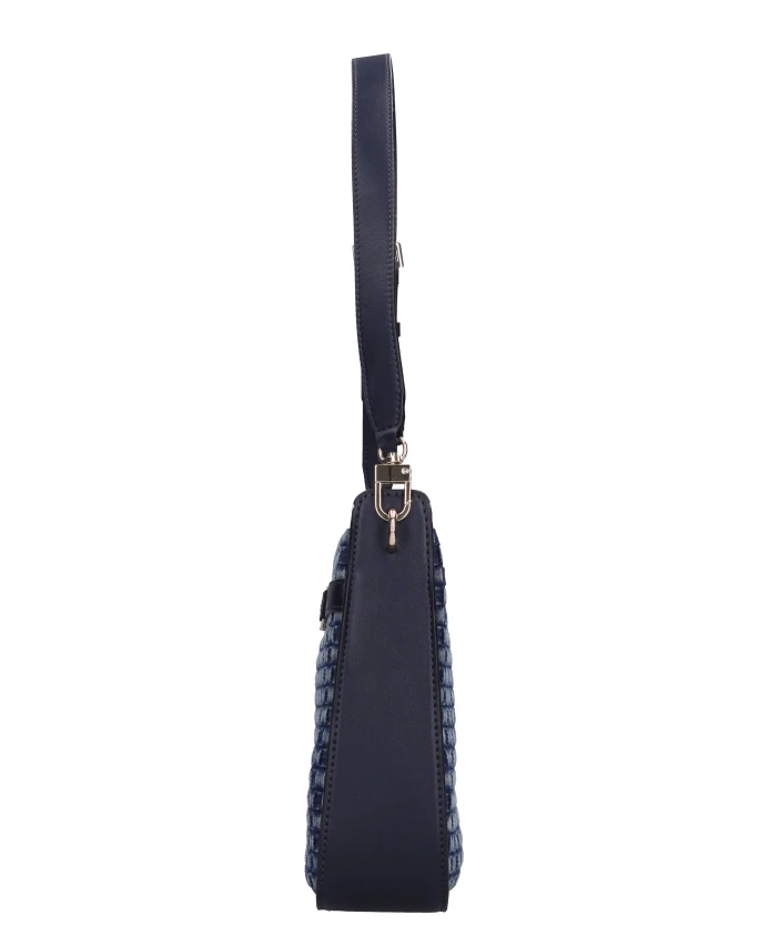 Сумка-хобо Guess Majka сочетает в себе плетеную джинсовую ткань и гладкую отделку из искусственной кожи, создавая повседневную сумку через плечо с надежной застежкой-молнией и съемной ручкой. Ключевые особенности: Синий | Искусственная кожа и ткань | Конструкция с одним отделением | Застежка-молния сверху | Съемная ручка из искусственной кожи | Текстура плетеной джинсовой ткани | Гладкая отделка из искусственной кожи | Монограмма | Фурнитура золотистого цвета | Подкладка | Силуэт хобо | Размеры и посадка: Высота: 21 см | Ширина: 27 см | Глубина: 7 см | Состав и уход: Искусственная кожа | Ткань