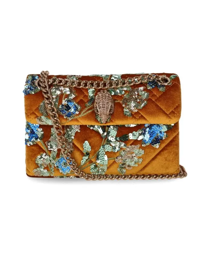 Мини-сумка Kurt Geiger Kensington из бархата сочетает в себе компактный силуэт сумки через плечо с цветочной отделкой из пайеток и золотым логотипом, идеально подходящая как для дневных, так и для вечерних образов. Ключевые особенности: Разноцветная | Бежевая | Бархат | Магнитная застежка | Плечевой ремень-цепочка золотистого цвета | Один внутренний карман | Отделение для карт | Подкладка | Цветочная отделка из пайеток | Золотой логотип спереди | Бархатная текстура | Размеры и посадка: 20 x 13 x 6 см | Состав и уход: 100% полиэстер (внешний слой) | 100% полиэстер (подкладка)
