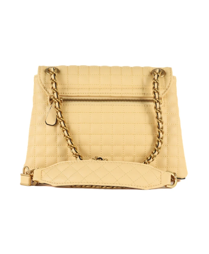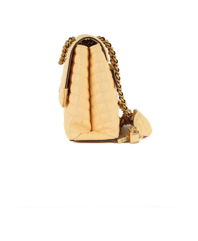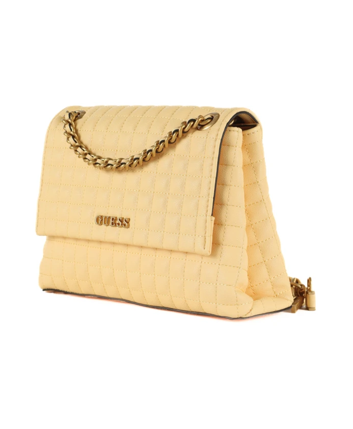 Пополните свою коллекцию аксессуаров этой стильной сумкой Guess через плечо - идеально подходящей для повседневного использования. Изготовленная из прочной стеганой кожи, она сочетает в себе элегантность и функциональность. Ключевые особенности: Желтый | Полиуретан | Несъемный плечевой ремень | Магнитная застежка | Два отделения | Внутренний карман на молнии | Отделения для карт | Задний карман на молнии | Металлическая надпись с логотипом | Металлические ножки на основании | Размеры и посадка: Высота 18 см | Ширина 26 см | Глубина 8,5 см | Состав и уход: 100% полиуретан