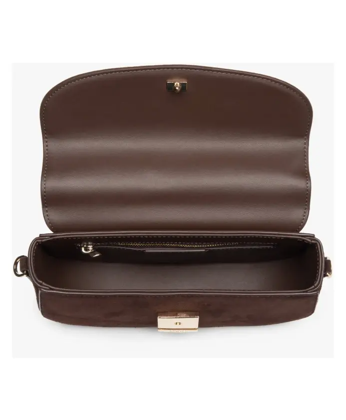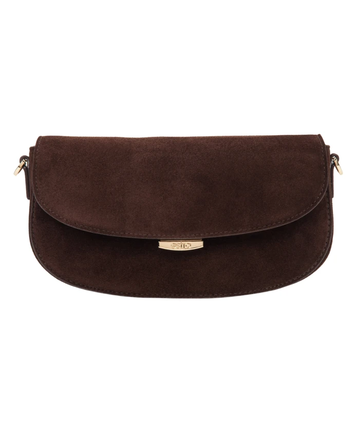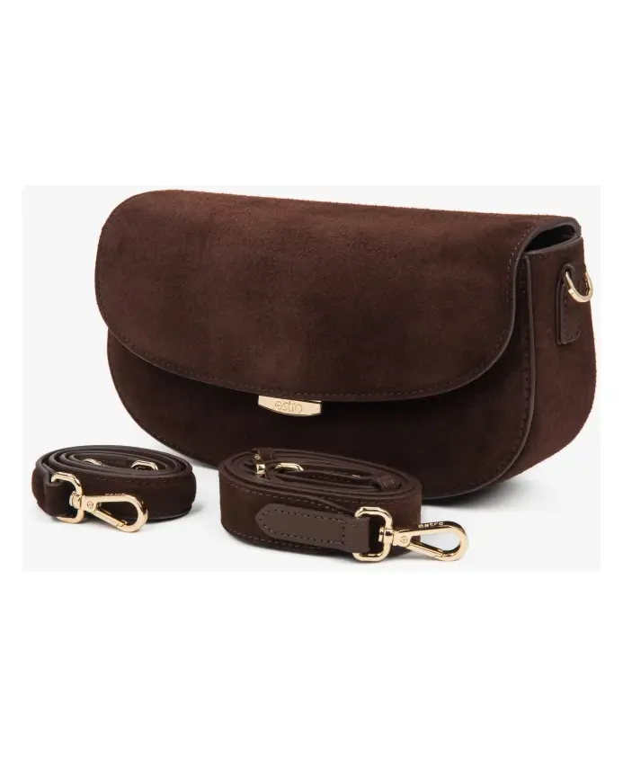 Сумка Estro Saddle на плечо сочетает в себе мягкую замшу и компактный силуэт в форме седла, предлагая удобное хранение и универсальные варианты ношения для повседневного использования. Ключевые особенности: Коричневый | Замша | Съемные лямки (66,5 см и 115 см) | Одно основное отделение и два кармана | Застежка-кнопка | Форма седла | Фурнитура серебристого цвета | Компактный, структурированный силуэт | Размеры и посадка: Длина: 23 см | Высота: 13 см | Ширина: 6,5 см | Длина лямок: 66,5 см, 115 см | Состав и уход: 100% натуральная замша | Натуральная кожа (внутри)
