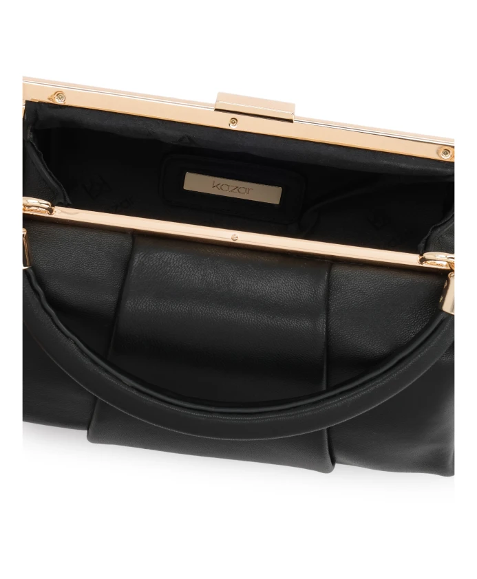 Элегантная сумка-клатч Kazar сочетает в себе жесткий металлический каркас и высококачественную натуральную кожу, создавая стильный вечерний аксессуар. Ее геометрическая форма, декоративный клапан и съемная цепочка делают ее практичной для ношения в руке или на плече. Ключевые особенности: Черный | Кожа | Верхняя ручка для ношения в руке | Съемный ремешок-цепочка | Основное отделение с застежкой-кнопкой на металлическом каркасе | Геометрический силуэт | Декоративный клапан | Жесткая конструкция | Металлический каркас | Состав и уход: Кожа