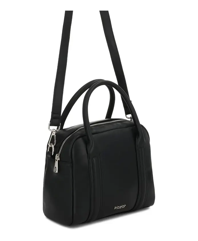 Кожаная сумка Kazar - это современная минималистичная сумка из кожи с выразительным силуэтом и универсальными вариантами ношения, подходящая как для работы, так и для вечерних выходов. Ключевые особенности: Черный | Кожа | Регулируемый, съемный плечевой ремень | Ручки для переноски | Застежка-молния | Внутри: 1 карман на молнии и 2 открытых кармана | Металлические ножки | Вертикальная строчка | Фурнитура серебристого цвета | Сдержанный выразительный силуэт | Гладкая текстура кожи | Вневременной дизайн | Состав и уход: Кожа