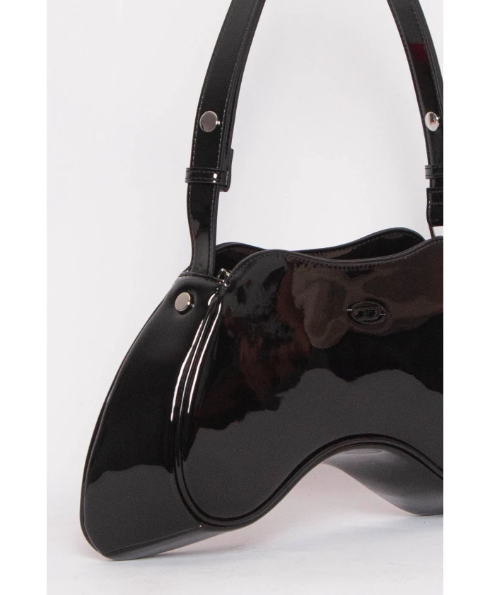 Сумка Diesel Play Glossy - это компактная сумка через плечо, выполненная в стиле джойстика, с глянцевой отделкой, созданная для комфортной повседневной жизни и быстрого доступа к необходимым вещам. Основные характеристики: Черный | Полиуретан | Магнитная застежка | Плечевой ремень | Одно основное отделение | Внутренний накладной карман | Асимметричная форма, напоминающая джойстик | Глянцевая отделка | Металлический логотип на передней части | Размеры и посадка: Ширина: 33 см | Один размер | Состав и уход: 100% полиуретан