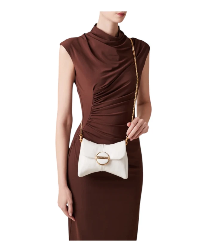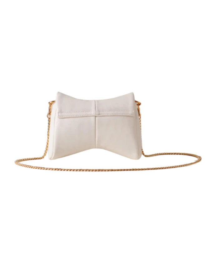 Компактная кожаная сумка через плечо Borbonese Coquette Crossbody Small с силуэтом, напоминающим бант, и магнитной застежкой-клапаном, идеально подходит для вечерних выходов и особых мероприятий. Основные характеристики: Белый цвет | Кожа напа | Регулируемый и съемный ремешок | Магнитная застежка-клапан | Фурнитура с золотым покрытием | Силуэт, напоминающий бант | Застежка-клапан | Детали в виде заклепок | Размеры и посадка: Мини-размер | Состав и уход: Кожа (кожа напа) | Полиэстеровая подкладка