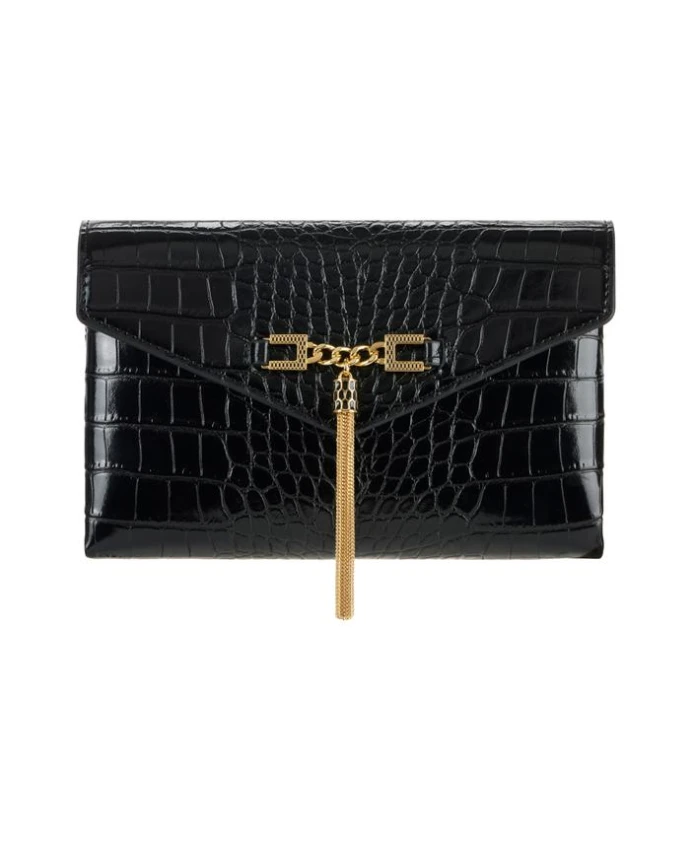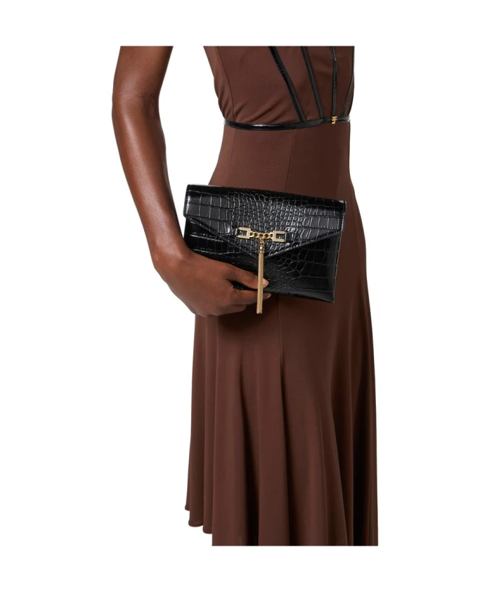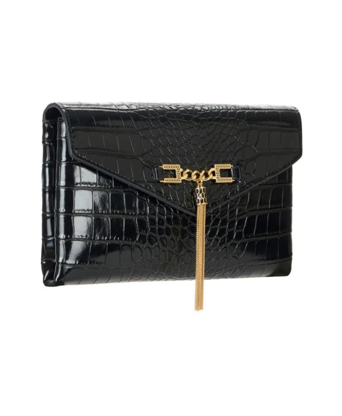 Сумка-мессенджер Elisabetta Franchi с цепочкой сочетает в себе компактный силуэт, крокодиловый принт, золотистую цепочку и кисточку с логотипом, идеально подходящую как для дневного, так и для вечернего образа. Ключевые особенности: Черный | Полиуретан | Плечевой ремень с золотистой металлической цепочкой | Текстура под крокодиловую кожу | Компактная минималистичная форма | Золотистый металлический логотип и кисточка | Размеры: 14 x 22 x 3,5 см | Состав и уход: 60% полиуретан | 40% полиэстер