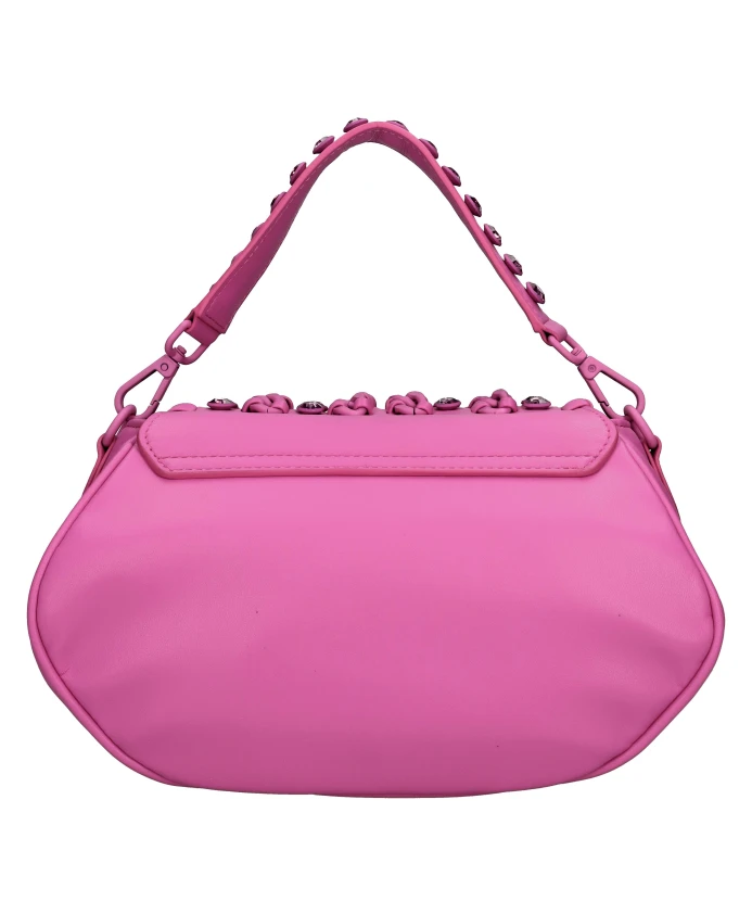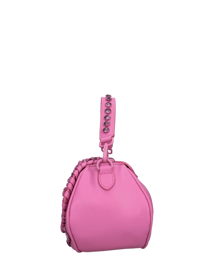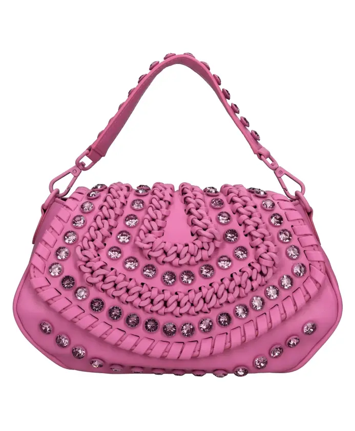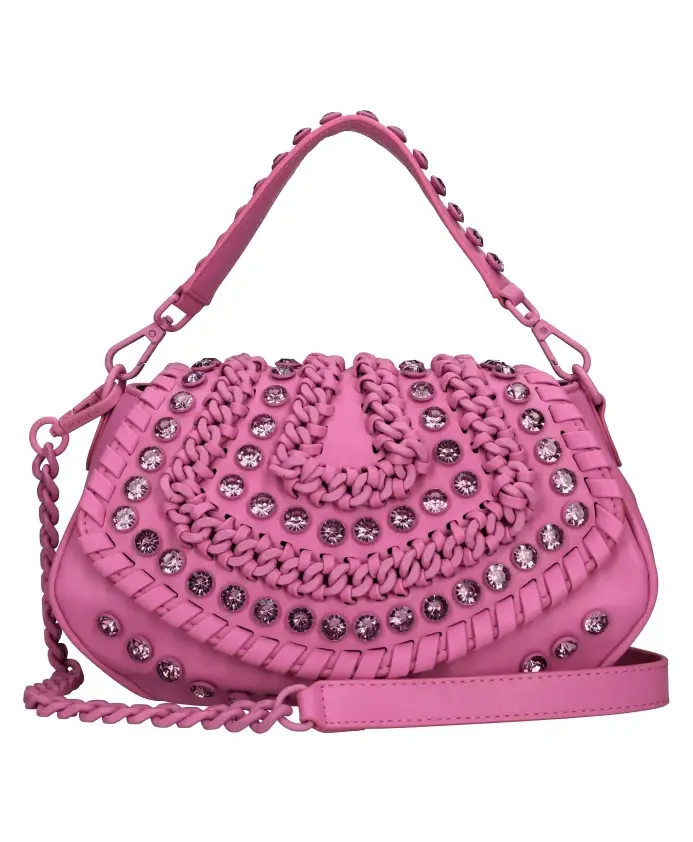 Сумка Andromeda от La Carrie - стильный аксессуар из искусственной кожи с металлическими деталями в тон и украшениями из страз. Идеально подходит для тех, кто ищет универсальную сумку со съемной ручкой и плечевым ремнем. Ключевые особенности: Фуксия | Розовый | Искусственная кожа | Съемная ручка | Съемный плечевой ремень | Заклепки | Металлические детали в тон | Украшена стразами | Размеры и посадка: Высота 15 см | Ширина 26 см | Глубина 10 см | Состав и уход: Искусственная кожа | Стразы