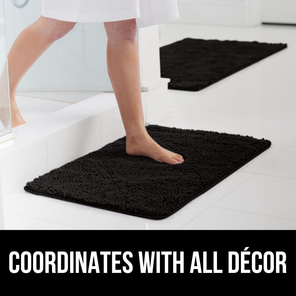 Коврик для ванной Gorilla Grip имеет впитывающий верхний слой из шенилла, который быстро удаляет влагу с ног. Его плотная резиновая подложка надёжно фиксирует коврик на полу, предотвращая скольжение. Благодаря быстросохнущим материалам, он остаётся гигиеничным и препятствует образованию плесени. Продукт идеально сочетает безопасность, удобство и практичность для ежедневного использования.