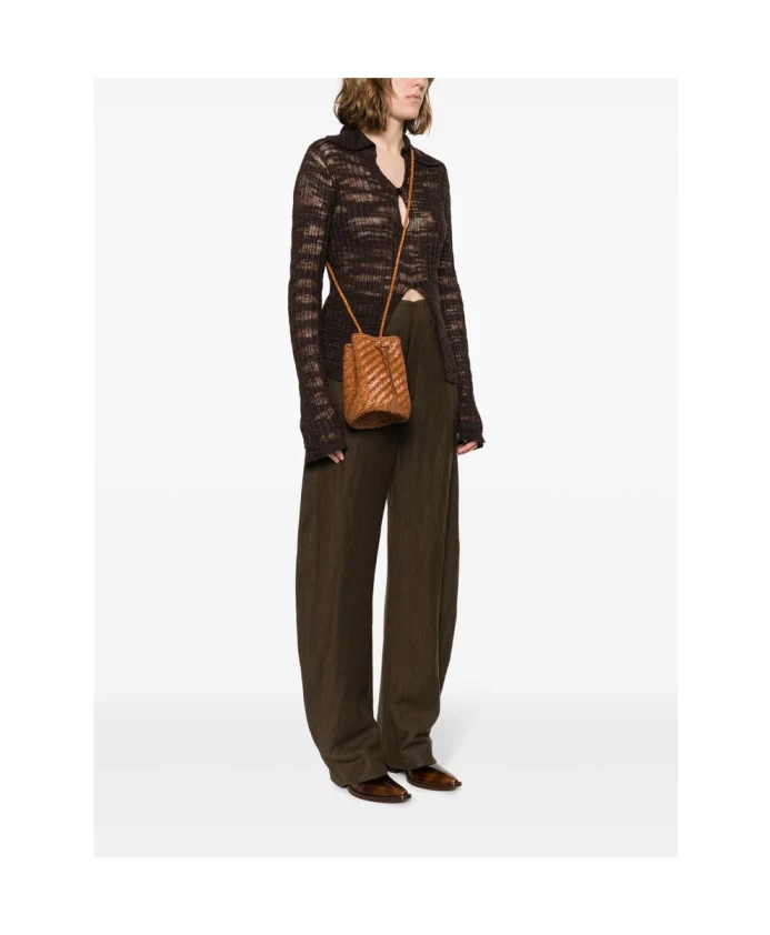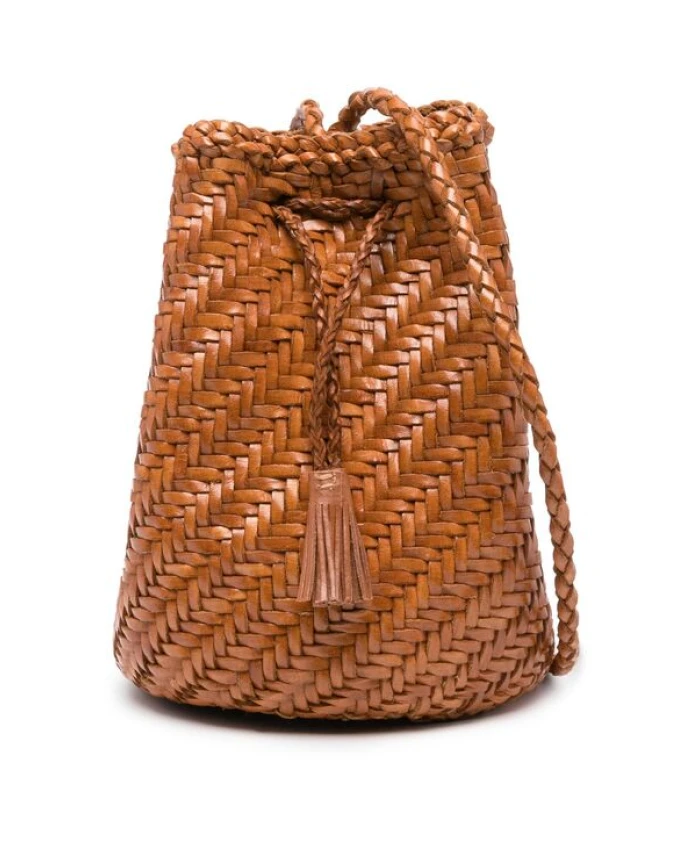 Добавьте элегантности своему стилю с помощью этой коричневой кожаной сумки-ведра Dragon Diffusion. Она украшена плетеным узором и подвеской с логотипом. Один плечевой ремень обеспечивает удобную ношение, а основное отделение предлагает достаточно места. Ключевые особенности: Коричневый | Кожа | Один плечевой ремень | Плетеный узор | Подвеска с логотипом | Деталь с кисточкой | Застежка на шнурке | Размеры и посадка: Глубина 14,0 см | Высота 20,0 см | Ширина 15,0 см |