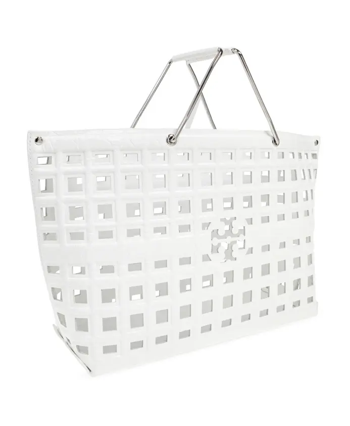 Представляем сумку Market Tote от Tory Burch из кожи - роскошную сумку-тоут, изготовленную из высококачественной белой кожи. Ее уникальный сетчатый узор и металлические ручки придают ей современную элегантность, делая ее идеальной для покупок или повседневного использования. Основные характеристики: Белый цвет | Кожа | Прямоугольная форма | Сетчатый узор | Металлические ручки | Вырезанный логотип дизайнера | Размеры и посадка: Высота: 32 см | Ширина: 35 см |