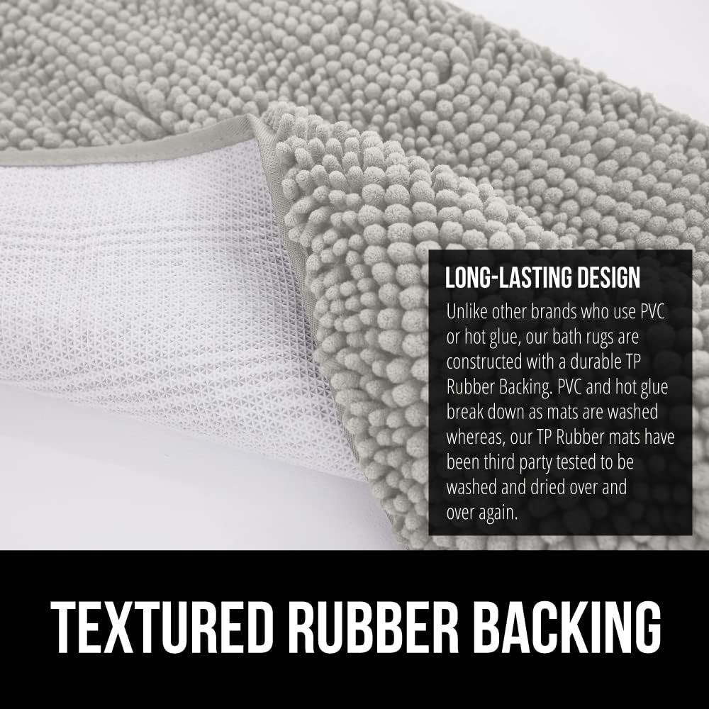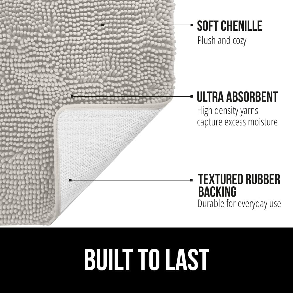 Коврик для ванной Gorilla Grip имеет впитывающий верхний слой из шенилла, который быстро удаляет влагу с ног. Его плотная резиновая подложка надёжно фиксирует коврик на полу, предотвращая скольжение. Благодаря быстросохнущим материалам, он остаётся гигиеничным и препятствует образованию плесени. Продукт идеально сочетает безопасность, удобство и практичность для ежедневного использования.