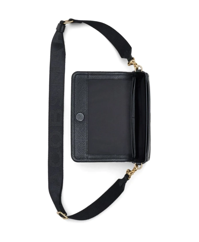 Подчеркните свой стиль с помощью этой черной мини-сумки через плечо Marc Jacobs 'The Leather Mini'. Изготовленная из натуральной кожи, она имеет съемный и регулируемый ремешок с логотипом, магнитную застежку, внутренний накладной карман, восемь внутренних отделений для карт, подкладку из саржи и фурнитуру из металла золотистого цвета. Тисненый логотип на передней части добавляет нотку роскоши. Размеры: длина: 20 см; глубина: 4 см; высота: 12 см.