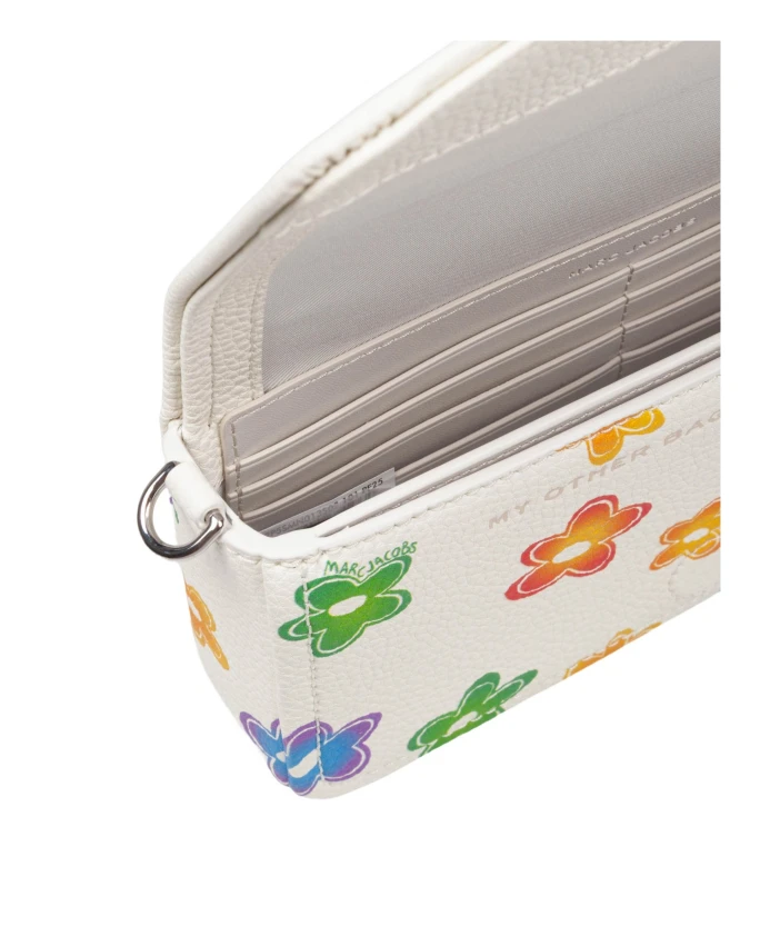 Подчеркните свой стиль с помощью этой миниатюрной кожаной сумки Marc Jacobs белого цвета с разноцветным цветочным узором. Она оснащена внутренним карманом, восемью отделениями для карт, регулируемым и съемным тканевым плечевым ремнем, подкладкой из саржи и поставляется с пыльником. Изготовлена из 100% натуральной кожи во Вьетнаме. Размеры: Ш20 см x В12 см x Г4 см.