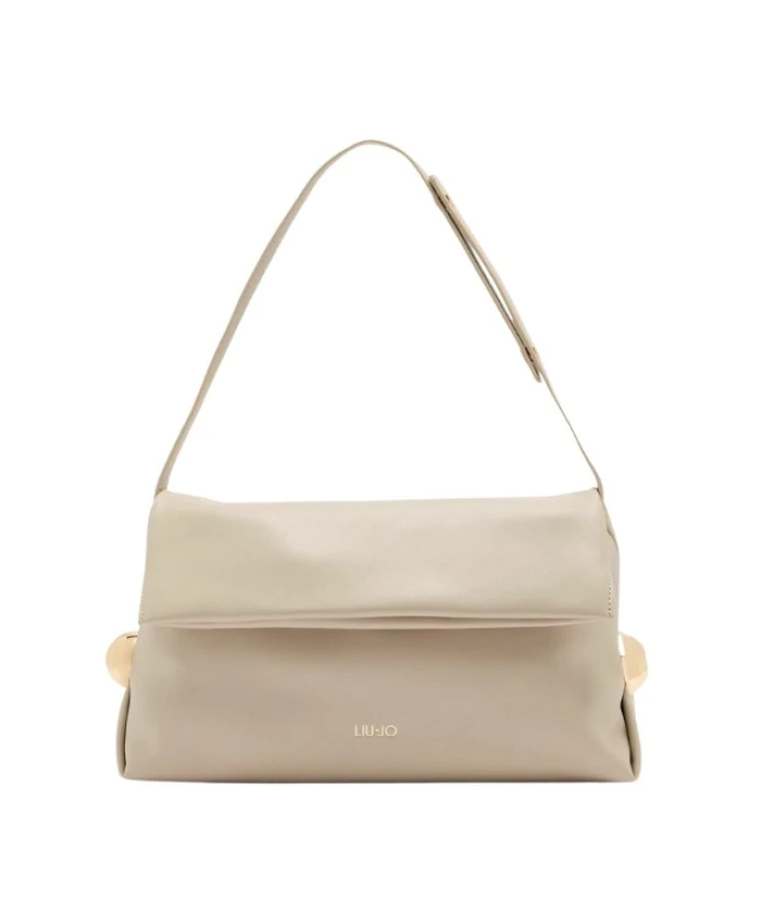 Элегантная женская сумка через плечо Liu Jo из бежевой искусственной кожи. Модель ECS M POCHETTE с удобной ручкой, магнитной застежкой-клапаном, вместительным основным отделением, внутренним карманом на молнии, золотистыми металлическими заклепками по бокам и металлическим логотипом на передней части. Изготовлена из 100% полиуретана. Размеры: 30 x 18 x 11 см.