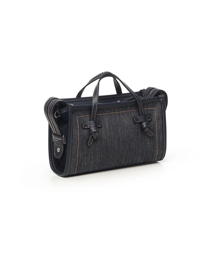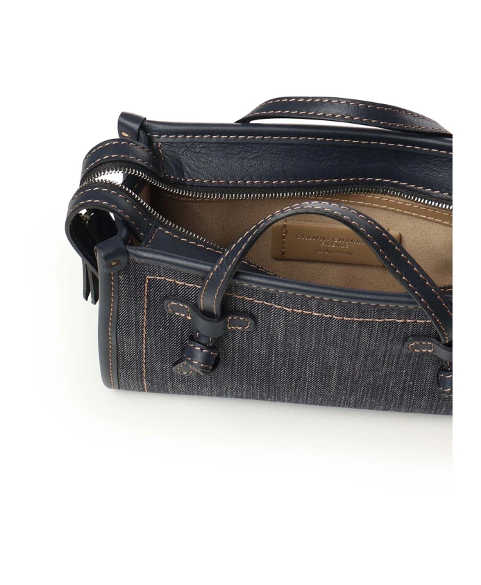 Подчеркните свой стиль с помощью этой сумочки Gianni Chiarini из хлопка с эффектом денима и кожаными деталями. Сумочка имеет застежку-молнию, регулируемый кожаный плечевой ремень и размеры 23 x 13,5 x 8,5 см. Изготовлена в Италии в элегантном темно-синем цвете.