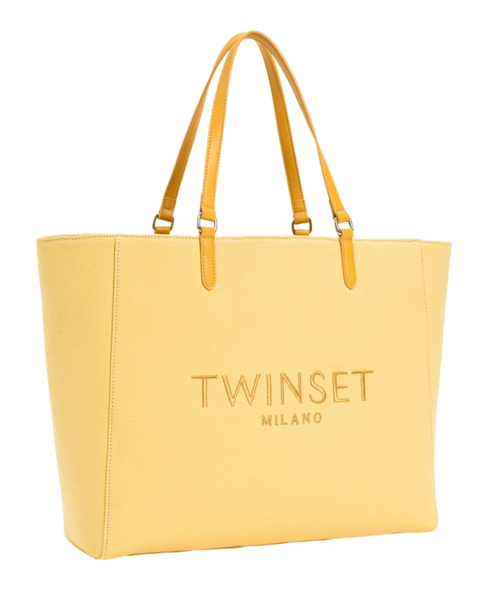 Желтая сумка-шопер с логотипом Twinset, желтый