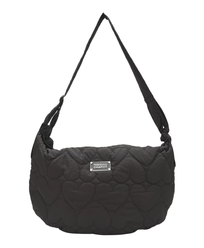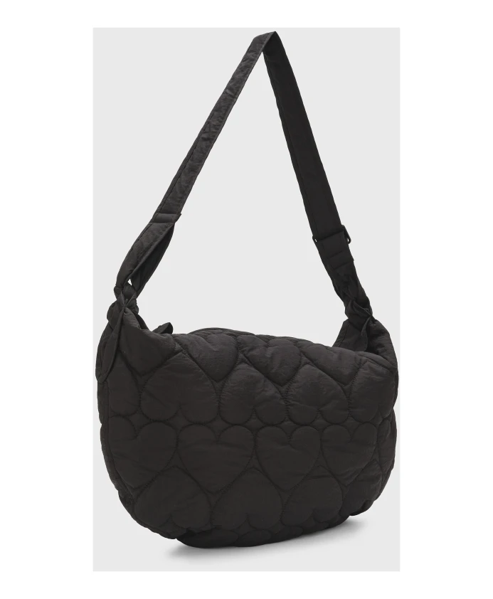 Эта черная сумка изготовлена из нейлона и украшена изящным стеганым узором в форме сердечек. Легкая и прочная, вместительная, она подойдет для всех ваших необходимых вещей. Игривое, женственное дополнение к любому образу.