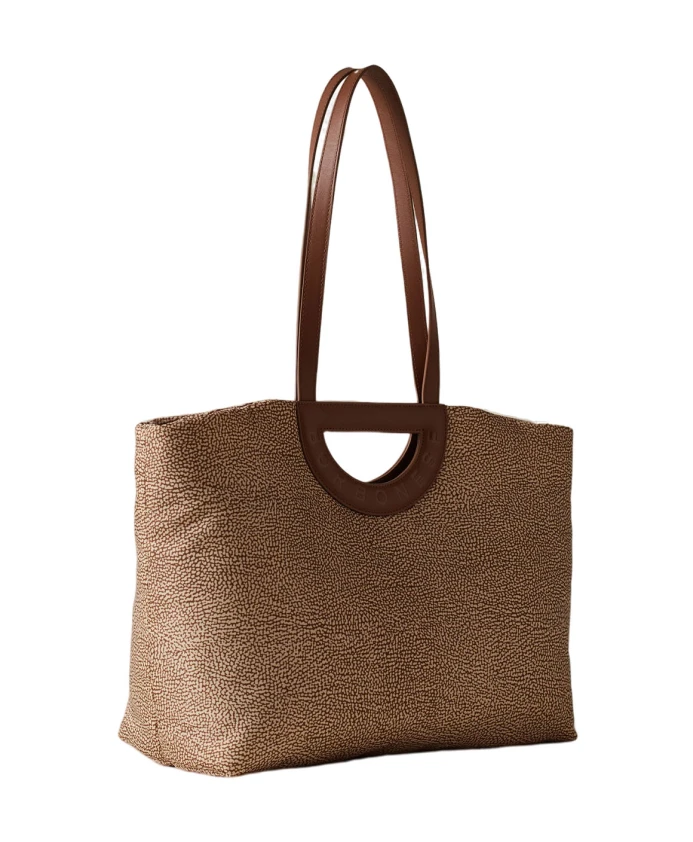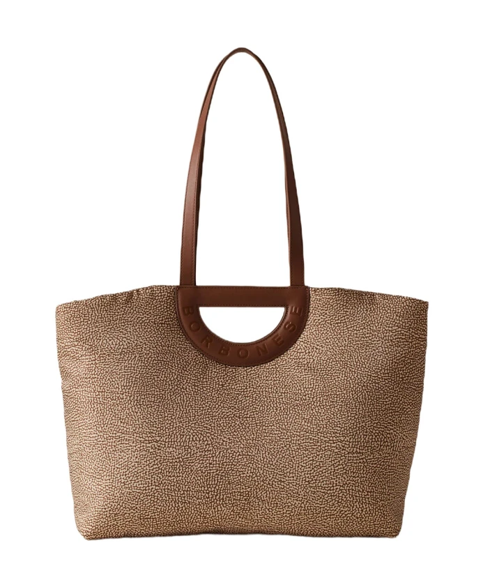Женская сумка-тоут Borbonese, изготовленная из технической ткани, с двойными кожаными ручками. Идеально подходит для покупок или повседневного использования.