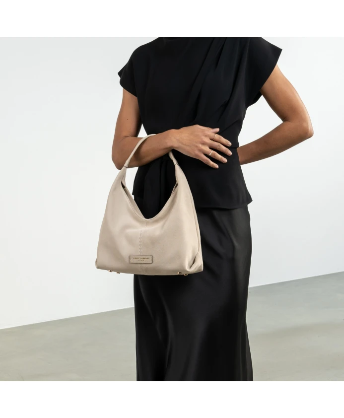 Небольшая замшевая сумочка Honorà Grace от Isabel Bernard выполнена из кремовой замши и сочетает в себе стиль и функциональность.