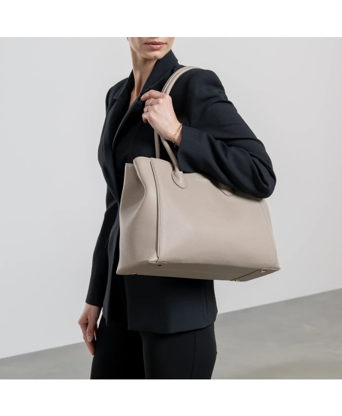Итальянская кожаная сумка Honorà Cloe от Isabel Bernard выполнена в бежевом цвете и сочетает в себе стиль и функциональность.