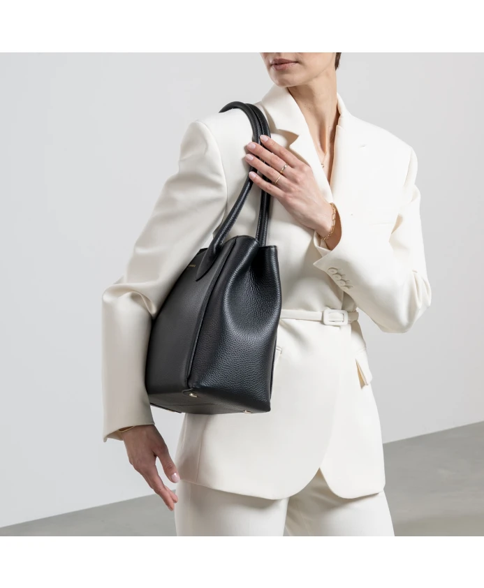 Сумка Honorè Cloe от Isabel Bernard, выполненная из телячьей кожи черного цвета, сочетает в себе стиль и функциональность.