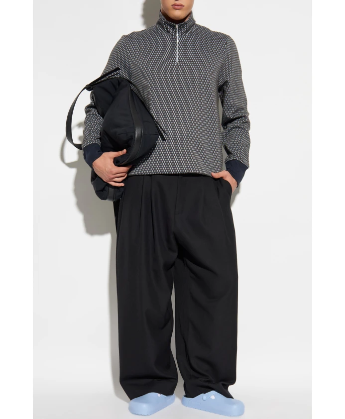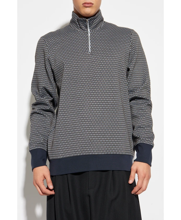 Толстовка на молнии от PS Paul Smith - это уникальное сочетание вневременной классики и смелой, современной элегантности. Высокий воротник-стойка и незаметная молния отвечают ожиданиям тех, кто ценит как элегантность, так и функциональность. Геометрический ромбовидный узор, выполненный в различных оттенках синего и чистого белого, четко подчеркивает динамичный и утонченный характер толстовки. Тщательно подобранная трикотажная ткань с гладкой поверхностью и легкой текстурой обеспечивает максимальный комфорт. Широкие темно-синие ребристые манжеты на рукавах и подоле создают гармоничный баланс между спортивным стилем и утонченной элегантностью, идеально дополняя общий образ. Отличительной особенностью является слегка тонированная молния с геометрическим язычком, выполняющая как практичную, так и декоративную функцию. ПОЧЕМУ СТОИТ КУПИТЬ ЭТОТ ТОВАР? * Оригинальный геометрический узор, добавляющий стиля * Точная обработка и высококачественная трикотажная ткань * Универсальный крой - подходит для многих случаев * Воплощает британскую элегантность в фирменном стиле PS Paul Smith * Уникальные детали: темно-синие ребристые манжеты и стильный язычок молнии Размеры модели Рост: 193 см Обхват груди: 95 см Обхват талии: 82 см Обхват бедер: 93 см Модель носит размер: L