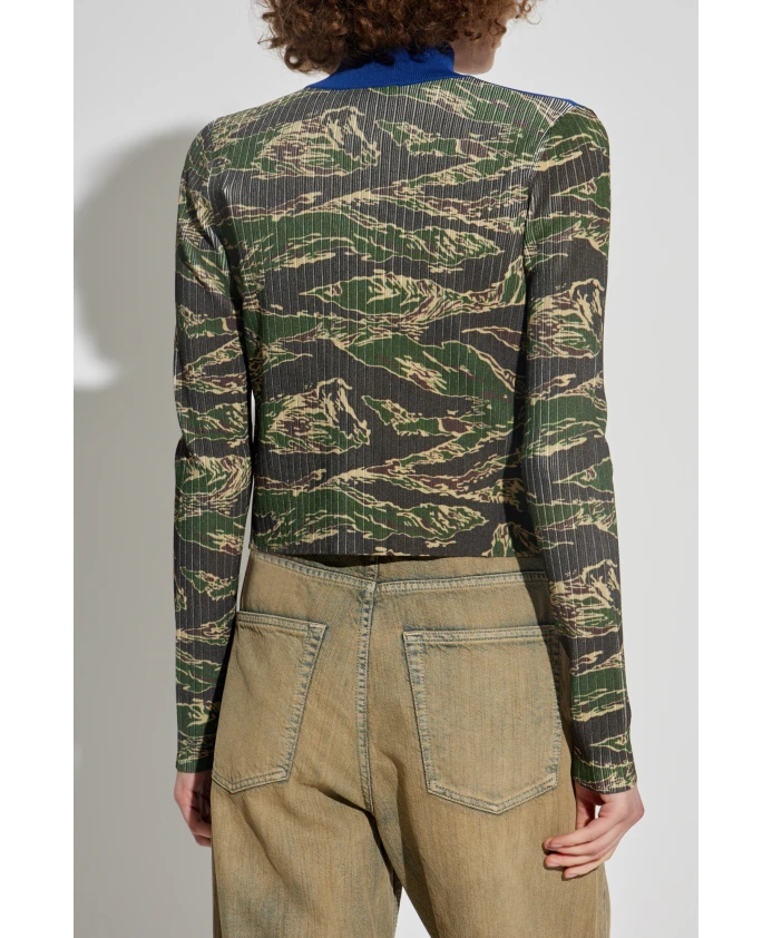 Свитшот M-CAMUT от модного дома DIESEL - это изысканно сшитая вещь, созданная для женщин, стремящихся к уникальному стилю. Эта модель привлекает внимание своим камуфляжным рисунком в стиле милитари в гармоничных оттенках зеленого и бежевого, контрастирующим с ярким синим акцентом сверху и едва заметными белыми полосами с красными линиями. Ребристая, эластичная трикотажная ткань обеспечивает максимальный комфорт и элегантность, деликатно подчеркивая силуэт благодаря слегка укороченному, облегающему крою. Длинные рукава, высококачественный воротник-стойка и молния во всю длину создают цельный образ и подчеркивают модернистский характер свитшота. Каждая деталь - от точной текстуры материала до оригинального, узнаваемого логотипа бренда - отражает утонченное внимание к деталям, характерное для итальянского модного дома DIESEL. ПОЧЕМУ СТОИТ КУПИТЬ ЭТОТ ТОВАР? * Уникальный узор и оригинальная цветовая палитра * Роскошная, эластичная трикотажная ткань с выразительной текстурой * Элегантная работа и тщательная проработка деталей * Фирменный знак итальянского бренда Diesel - гарантия высочайшего качества * Практичная молния по всей длине Параметры модели Рост: 177 см Обхват груди: 83 см Обхват талии: 61 см Обхват бедер: 89 см Модель носит размер: S