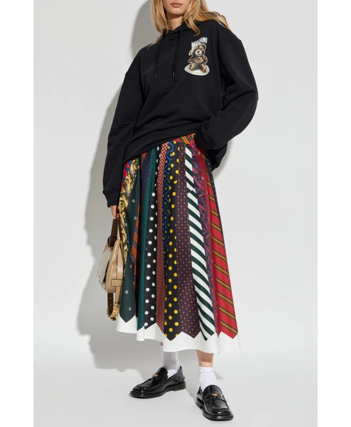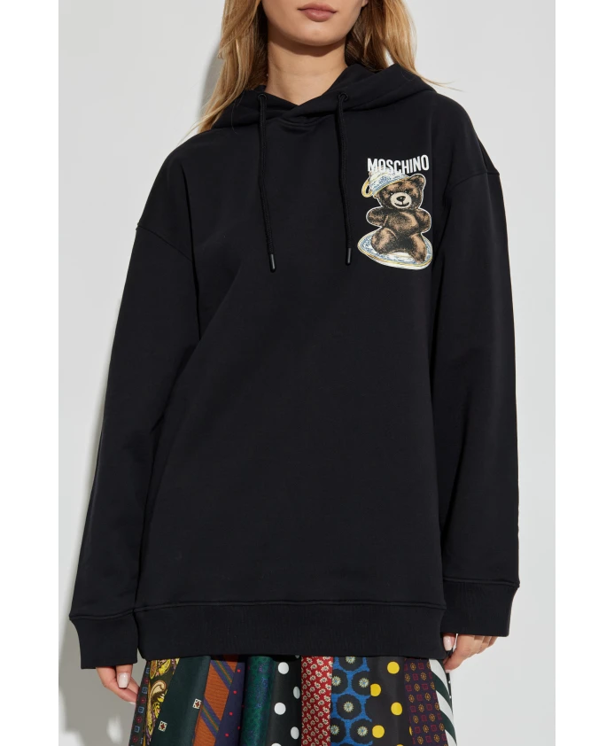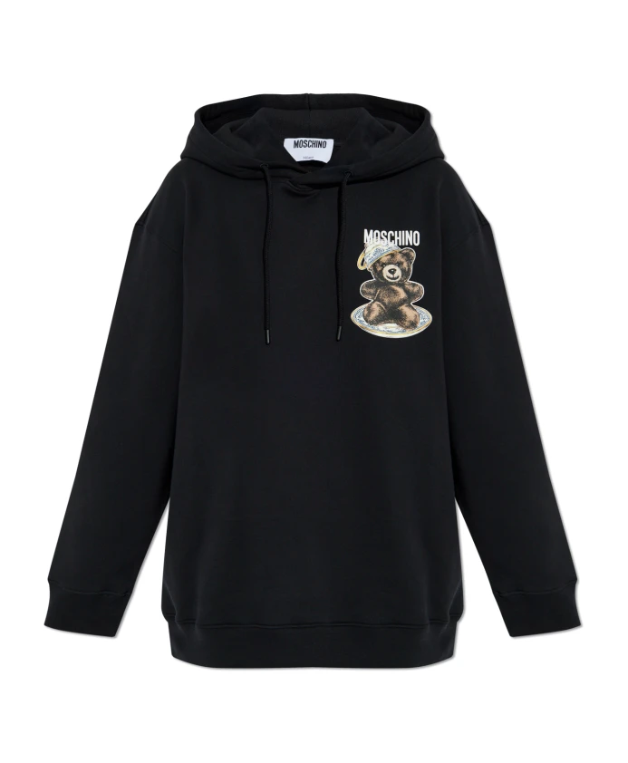 Этот свитшот с принтом из коллекции MOSCHINO очаровывает своей изысканной простотой и уникальной эстетикой. Модель впечатляет классическим прямым кроем, заниженными плечевыми швами, широкими манжетами и регулируемым капюшоном, обеспечивая непреходящий комфорт и исключительную элегантность. Гладкая ткань, изготовленная из тщательно отобранного хлопка, гарантирует приятные тактильные ощущения и долговечность, подчеркивая высочайшее качество исполнения. На черном фоне свитшота расположен очаровательный принт с изображением плюшевого медведя, сидящего на тарелке с чашкой на голове; образ дополняет смелый, контрастный логотип бренда - эмблема роскоши и свободы самовыражения. MOSCHINO славится своим идеальным сочетанием оптимизма, свежести и игривости, превращая каждый дизайн в уникальное произведение искусства, излучающее радость и утонченный юмор. ПОЧЕМУ СТОИТ КУПИТЬ ЭТОТ ТОВАР? * Исключительный комфорт и классический крой * Роскошная, натуральная, высококачественная ткань * Оригинальный принт и смелый логотип * Воплощение индивидуального стиля и мастерства известного дизайнера * Фирменная толстовка из эксклюзивной линии Moschino Параметры модели Рост: 176 см Обхват груди: 85 см Обхват талии: 60 см Обхват бедер: 89 см Модель носит размер: S