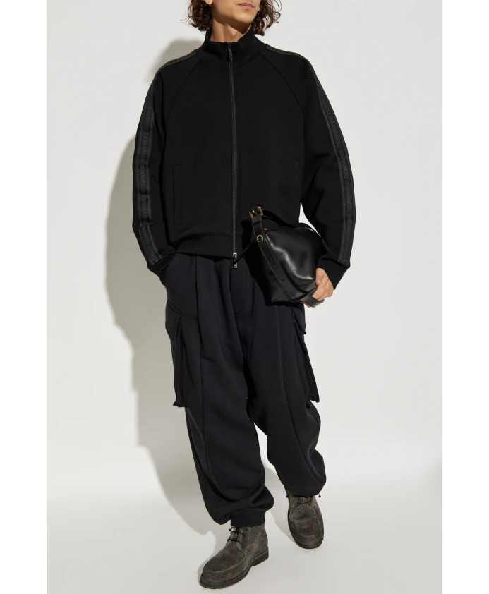 Толстовка Dsquared2 LOGO - это воплощение альтернативной роскоши, где канадский дизайн сочетается с итальянской изысканностью. Классическая застежка-молния, слегка свободный крой и рукава реглан обеспечивают свободу движений, а воротник-стойка и молния во всю длину создают элегантный, обтекаемый силуэт. Минималистичный черный цвет сочетается с ненавязчивым брендингом - тональный логотип «DSQUARED2», вышитый на полосках вдоль рукавов, подчеркивает престижный характер изделия. Высококачественная трикотажная ткань, сочетающая вискозу с эластичными волокнами, гарантирует комфорт, мягкость и долговечность. Это гармоничное сочетание спортивного комфорта и утонченной элегантности, ненавязчиво созданное дизайнерами мирового класса. ПОЧЕМУ ЭТОТ ТОВАР СТОИТ КУПИТЬ? * Уникальное сочетание минималистичного дизайна и эксклюзивных деталей * Высокое качество изготовления и внимание к каждой детали * Материал, обеспечивающий максимальный комфорт * Изящный, элегантный логотип, подчеркивающий роскошный характер * Отличный выбор для ценителей вневременного стиля. Параметры модели: Рост: 193 см, Обхват груди: 95 см, Обхват талии: 82 см, Обхват бедер: 93 см. Модель носит размер: L