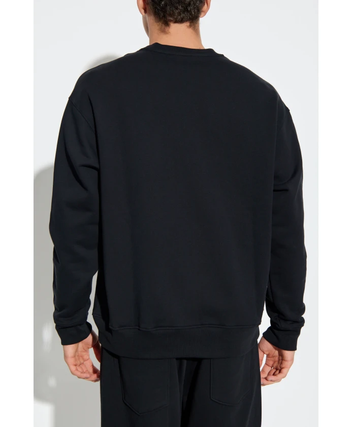 Толстовка с логотипом MOSCHINO воплощает современную элегантность и впечатляет безупречным мастерством исполнения и изысканной простотой. Классический круглый вырез, стандартный крой и длина до бедра гарантируют вневременную привлекательность и исключительный комфорт. Гладкая черная трикотажная ткань из высококачественного хлопка очаровывает своей матовой поверхностью, исключительной износостойкостью и необычайной мягкостью. Внимание привлекает небольшой карман на левой стороне груди, украшенный контрастной белой полосой с двумя серебряными заклепками и художественным фирменным принтом дизайнера. Эта деталь придает изделию утонченный характер и является синонимом эксклюзивных дизайнов Moschino - икон вневременной роскоши и творческой смелости. ПОЧЕМУ СТОИТ ВЫБРАТЬ ЭТОТ ТОВАР? * Превосходное качество хлопка - прочность и комфорт * Минималистичный, универсальный дизайн * Изысканные детали, подчеркивающие престиж бренда Moschino * Отличный выбор для ценителей утонченной простоты Параметры модели Рост: 193 см Обхват груди: 95 см Обхват талии: 82 см Обхват бедер: 93 см Модель носит размер: L