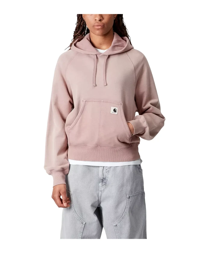 Женская толстовка Carhartt WIP Hooded Hudson Sweatshirt W Daphne сочетает в себе расслабленный, повседневный стиль и комфорт. Изготовлена из плотного, не вызывающего зуда хлопкового трикотажа плотностью 420 г/м² с петлевым плетением, она невероятно мягкая на ощупь и идеально подходит для прохладных дней. Свободный крой создает непринужденный, слегка квадратный силуэт со спущенными плечами. Цвет Daphne с едва заметным эффектом потертости делает ее идеальным выбором для городского стиля. Толстовка также имеет регулируемый капюшон и вместительный карман с этикеткой Carhartt WIP. Цвет - розовый. Материал - 100% хлопок с петлевым плетением. Крой со спущенными плечами. Регулируемый капюшон и практичный карман. Ребристые манжеты на рукавах и нижнем крае.