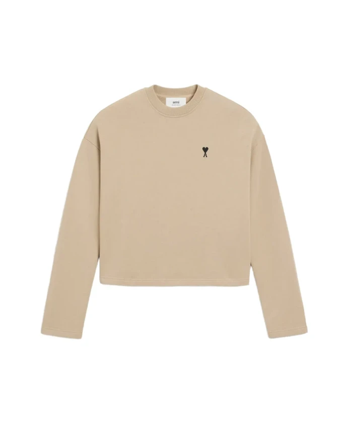 Укороченная толстовка Ami Paris Ami de Coeur изготовлена из хлопкового флиса с фирменной вышивкой Ami de Coeur на груди. Она предназначена для повседневной носки и имеет простой круглый вырез. Ключевые особенности: Бежевый | Хлопок | Хлопковый флис | Дышащая ткань | Круглый вырез | Ребристые манжеты, воротник и нижний край | Вышивка Ami de Coeur на груди | Вышивка «ami» в тон под вырезом горловины сзади | Укороченный силуэт | Длинные рукава | Размеры и посадка: Длина по спинке: 55 см (размер S) | Укороченный крой | Соответствует размеру | Состав и уход: 100% хлопок | Машинная стирка при 30°C в щадящем режиме. Не сушить в сушильной машине. Гладить при низкой температуре. Не подвергать химчистке.