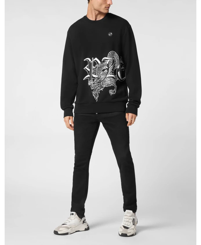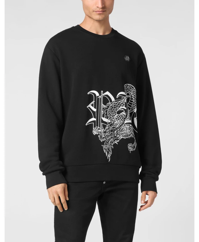 Свитшот Philipp Plein Dragon сочетает в себе комфорт и яркий, декорированный графический принт, создавая изысканный уличный образ. Носите его с джинсами или спортивными штанами для роскошного повседневного стиля. Ключевые особенности: Черный | Хлопок | Мягкая ткань | Прочный материал | Ребристый круглый вырез для лучшей формы | Ребристые манжеты и нижний край для сохранения формы | Подходит для многослойной одежды или ношения отдельно | Яркий графический мотив с замысловатой отделкой | Круглый вырез | Длинные рукава | Ребристый нижний край и манжеты | Размеры и посадка: Свободный крой; идеально подходит для многослойной одежды или ношения отдельно | Состав и уход: 88% хлопок | 12% полиэстер