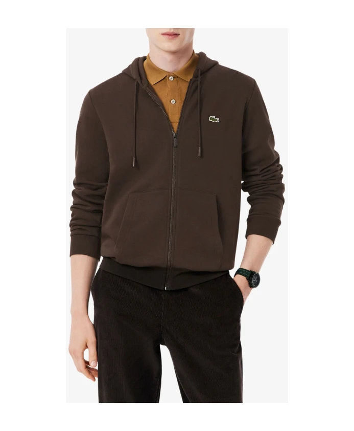 Толстовка Lacoste на молнии из флиса сочетает в себе мягкий, ворсистый хлопковый флис с молнией во всю длину и минималистичным силуэтом, дополненным фирменной вышитой крокодиловой кожей для создания элегантного повседневного образа. Ключевые особенности: Коричневый | Хлопковый флис | Мягкий, ворсистый флис | Обеспечивает тепло | Молния во всю длину | Капюшон на трикотажной подкладке | Карман-кенгуру | Минималистичный дизайн | Вышитая крокодиловая кожа на груди | Ребристые манжеты и нижний край | Размер и посадка: Классический крой | Соответствует размеру | Материал и уход: Верхний слой: 84% хлопок, 16% полиэстер | Подкладка капюшона: 100% хлопок | Ребристые манжеты: 98% хлопок, 2% эластан