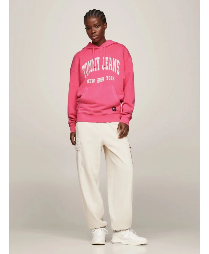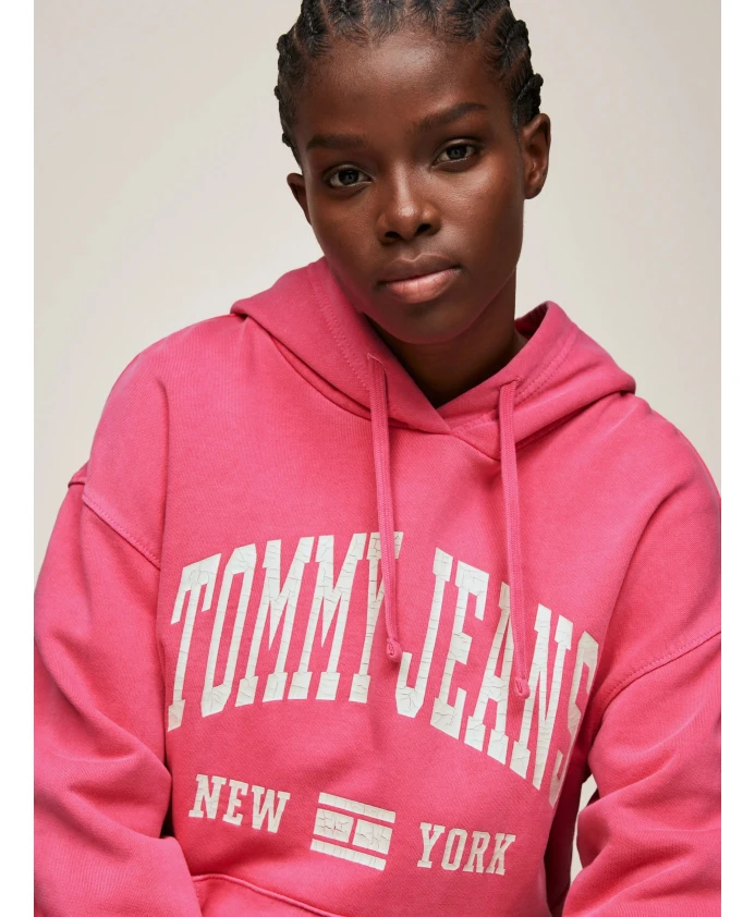 Худи в стиле университетской формы с эффектом потертости Tommy Jeans, розовый