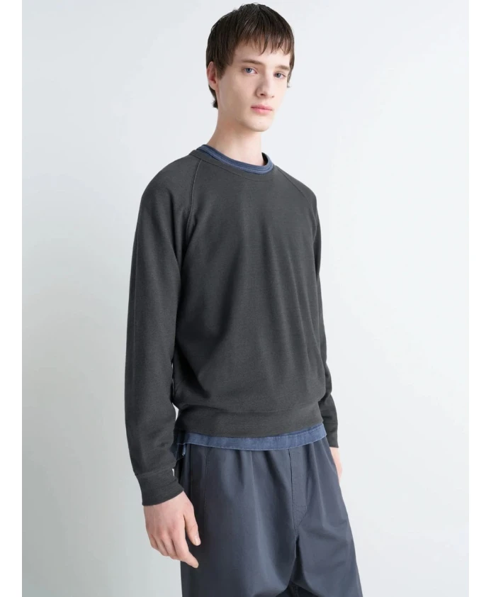 Свитшот Lemaire с круглым вырезом сочетает в себе изысканный минимализм и комфорт. Он изготовлен из хлопково-шерстяной махровой ткани с начесом внутри для мягкости и тепла. Он идеально подходит для многослойного ношения в переходные и прохладные сезоны. Ключевые особенности: Графитово-серый | Хлопково-шерстяная махровая ткань | Начес внутри для дополнительного тепла | Мягкий, уютный | Круглый вырез | Длинные рукава реглан | Ребристые манжеты на вырезе, рукавах и подоле | Прямой крой | Размеры и посадка: Прямой крой | Состав ткани и уход: 88% хлопок, 12% шерсть | 89% хлопок, 9% шерсть, 2% эластан | Машинная стирка в холодной воде в щадящем режиме