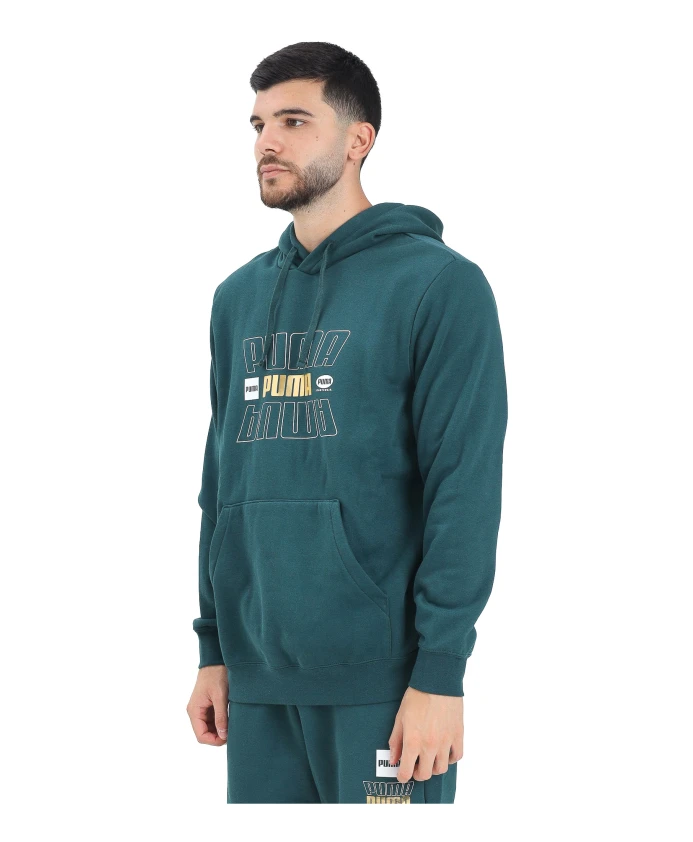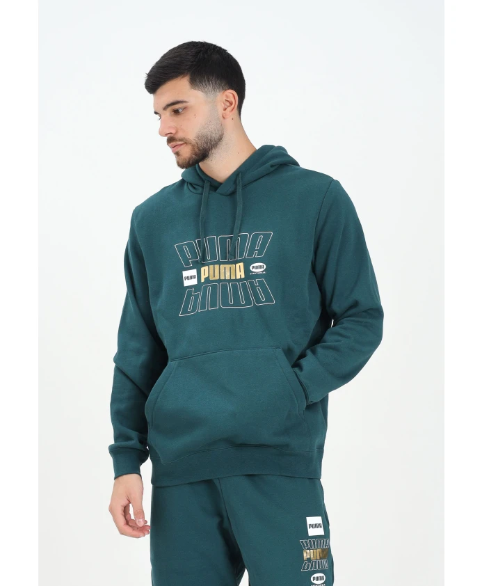 Оставайтесь стильными и чувствуйте себя комфортно в этой зеленой мужской толстовке PUMA Essentials Logo Lab. Она имеет регулируемый капюшон на шнурке и вместительный карман-кенгуру спереди. На груди расположен многослойный принт с логотипом Puma в бело-золотых тонах, придающий ей городской стиль. Ребристые манжеты и нижний край обеспечивают удобную посадку. Повседневная и спортивная одежда, идеально подходящая для отдыха и завершения уличных образов. Модель носит размер L, рост 187 см. Рекомендуется стирка и глажка при средней температуре. Сезон осень/зима. Зеленая мужская толстовка, стандартный крой, осень/зима 68819075. Материал: 100% хлопок.