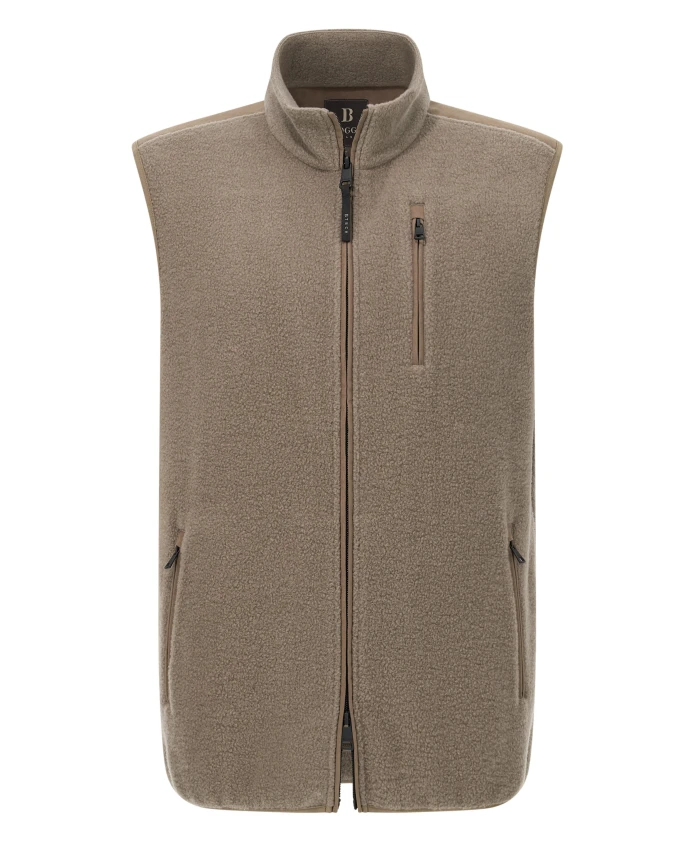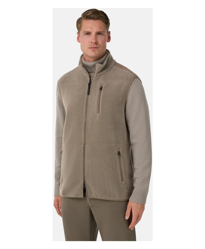Толстовка без рукавов B Tech Teddy от Boggi Milano сочетает в себе богатую шерстью смесь WOOLTECH и техническую пряжу для комфортного тепла и удобства многослойности. Воротник-поло и молния во всю длину делают ее универсальным промежуточным слоем для переходной погоды. Ключевые особенности: Бежевый | Серо-коричневый | Шерсть | Теплоизоляция | Техническая пряжа | Прочная ткань | Молния во всю длину с фирменным язычком | Передний карман с деталями из искусственной замши | Воротник-поло | Без рукавов | Текстура "мишка" | Отделка из искусственной замши по низу и на карманах | Состав и уход: 80% шерсть | 20% нейлон