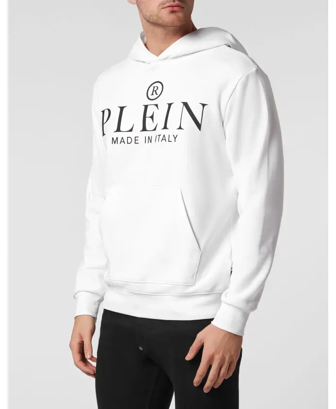 Толстовка Philipp Plein Hoodie Sweatshirt выполнена из мягкого хлопкового флиса с фирменным принтом и шестиугольной нашивкой из сафьяновой кожи PP на капюшоне. Она предназначена для повседневной носки и имеет боковые карманы, ребристые манжеты и нижний край. Основные характеристики: Белый цвет | Хлопковый флис | Два боковых кармана | Ребристые манжеты и нижний край | Прикрепленный капюшон с шестиугольной нашивкой из сафьяновой кожи PP | Фирменный принт спереди | Размеры и посадка: Свободный крой | Состав ткани и уход: Ткань 1: 100% хлопок | Ткань 2: 98% хлопок, 2% эластан | Ткань 3: 100% хлопок