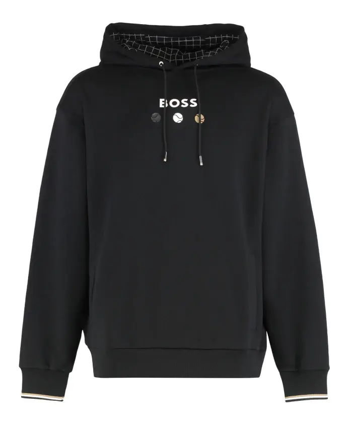 Худи Hugo Terry сочетает в себе дышащую махровую ткань и прямой крой, идеально подходящий для многослойной одежды. Дизайн дополняют изображение теннисного мяча и логотип. Ключевые особенности: Черный | Хлопок | Дышащая махровая ткань | Капюшон | Подкладка капюшона с сетчатым рисунком | Принт с изображением теннисного мяча | Логотип | Подкладка капюшона с сетчатым рисунком | Размер и посадка: Прямой крой | Подходит для многослойной одежды | Состав ткани и уход: 100% хлопок | Машинная стирка при 30°C (деликатный режим). Не отбеливать. Гладить при низкой температуре. Не сушить в сушильной машине.