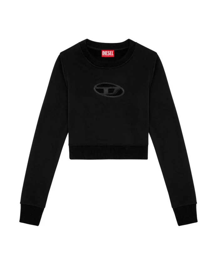 Укороченная толстовка Diesel F-Slimmy-Od от Diesel с эффектным вырезанным логотипом «D». Она создана для современных повседневных и уличных образов. Ключевые особенности: Черный цвет | Смесь хлопка | Ребристый воротник, манжеты и нижний край | Прямой низ | Круглый вырез | Длинные рукава | Укороченный силуэт | Вырезанный логотип «D» | Размеры и посадка: Приталенный крой | Короткая длина | Состав и уход: Основная часть: 60% хлопок, 40% полиэстер | Ребристый край: 58% хлопок, 40% полиэстер, 2% эластан | Нитки для вышивки: 100% полиэстер | Машинная стирка; см. этикетку по уходу.