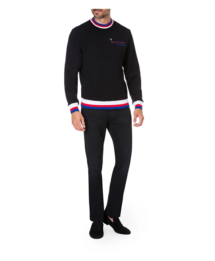 Толстовка Billionaire Sweatshirt LS City - это памятный пуловер из хлопкового флиса с круглым вырезом из коллекции бренда, посвященной Чемпионату мира по футболу FIFA. На нем напечатаны и вышиты логотипы компании, а также присутствует трехцветная ребристая отделка. Основные характеристики: Черный | Хлопок | Мягкий флис | Пуловер | Декоративные принты и вышивка | Круглый вырез | Ребристый вырез, манжеты и нижний край с трехцветными полосами | Напечатанные и вышитые логотипы компании и декоративные элементы | Состав и уход: Материал: 100% хлопок | Вставка: 100% хлопок