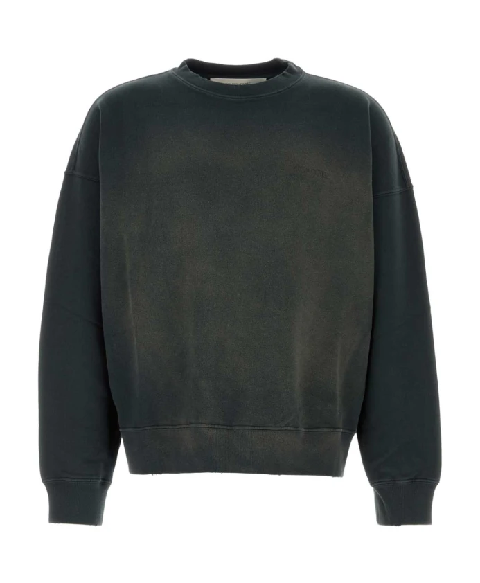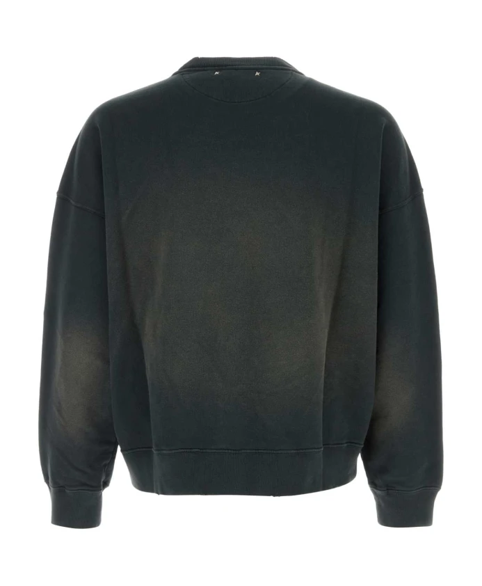 Толстовка Golden Goose с эффектом потертости - это свободная, объемная хлопковая толстовка с круглым вырезом и винтажной обработкой. Она создана для повседневной носки и комфортного многослойного образа. Ключевые особенности: Черный | Хлопок | Дышащая ткань | Ребристый круглый вырез | Ребристые манжеты и нижний край | Эффект потертости/стирания | Вышитый логотип | Круглый вырез | Длинные рукава | Спущенные плечи | Необработанный нижний край | Размер и посадка: Свободный крой | Состав ткани и уход: 100% хлопок | Машинная стирка в холодной воде (30°C).