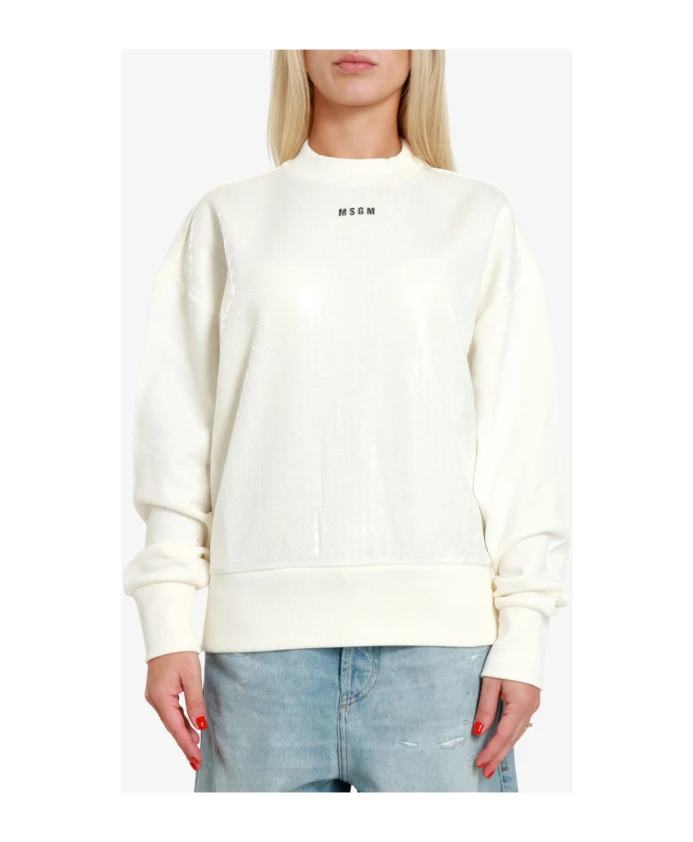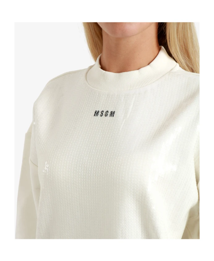 Толстовка MSGM с пайетками сочетает в себе комфорт и эффектную переднюю панель, украшенную пайетками, создавая изысканный и элегантный образ. Предназначена для повседневной носки, имеет ребристую отделку на воротнике, манжетах и подоле. Ключевые особенности: Бежевый цвет | Смесь хлопка | Передняя панель, полностью покрытая пайетками | Ребристый круглый воротник | Длинные рукава | Высокие ребристые манжеты | Высокий ребристый низ | Логотип MSGM на передней части | Размер и посадка: Стандартный крой | Состав ткани и уход: Смесь хлопка