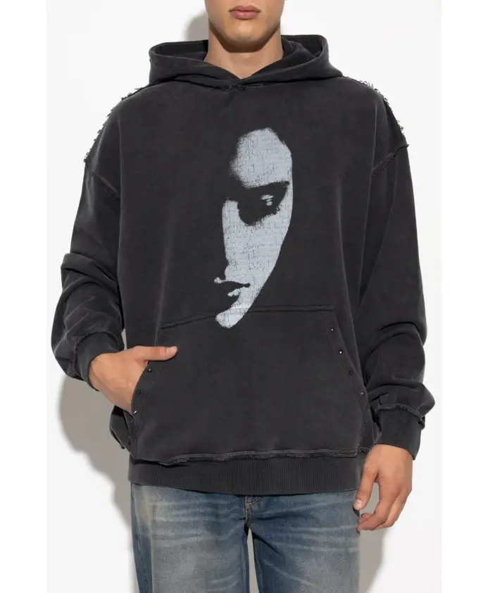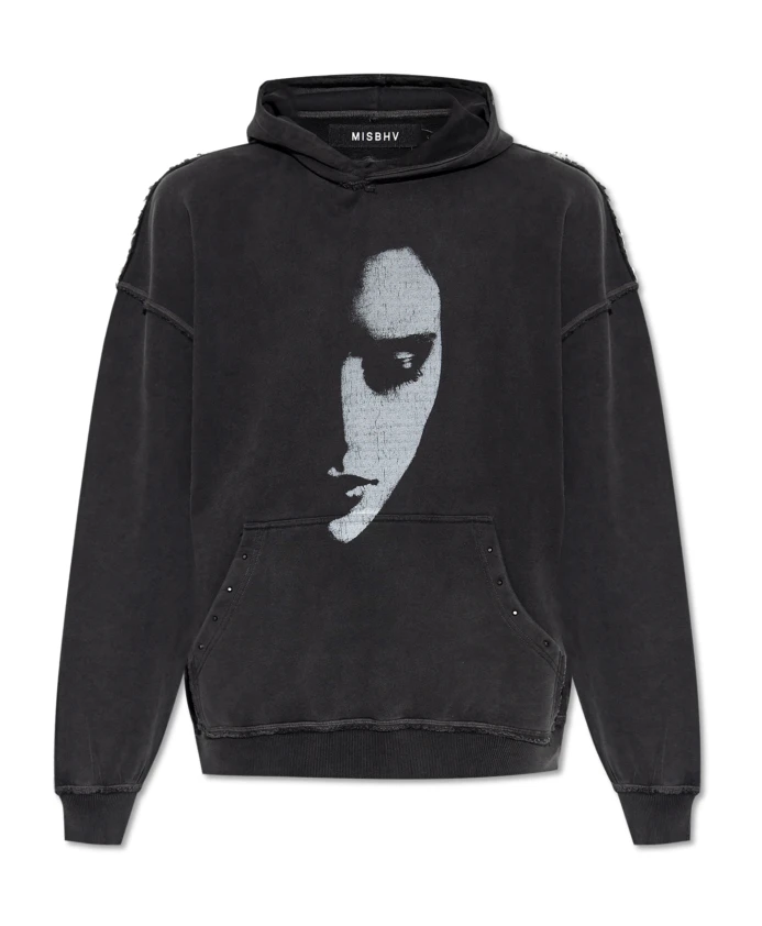 Толстовка с принтом от Misbhv - это предложение для ценителей авангардной элегантности. Эта модель отличается свободным кроем и приспущенными плечами, обеспечивающими исключительный комфорт и современный вид. Тщательно продуманный капюшон из трикотажной ткани средней плотности гармонично сочетается с широкими ребристыми манжетами, подчеркивая сбалансированность дизайна. Черный фон толстовки украшен крупным графическим принтом фрагмента лица - минималистичным, но эффектным, отсылающим к духу первобытности и современного искусства.