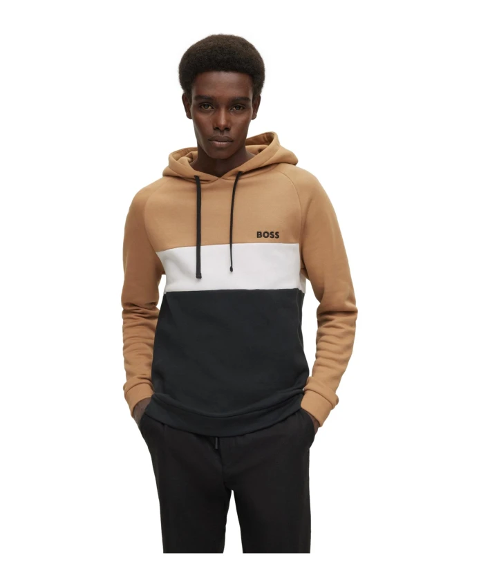 Дополните свой домашний гардероб этой современной толстовкой Hugo Boss. Удобная толстовка прямого кроя, выполненная из флиса с высоким содержанием хлопка для естественного комфорта, украшена цветовыми блоками в фирменных оттенках бренда. Вышитый логотип BOSS на левой стороне груди завершает дизайн. Цвет: бежевый. Материал: 77% хлопок, 23% полиэстер. Инструкции по уходу: машинная стирка при 40°C, не отбеливать, не сушить в сушильной машине, гладить при низкой температуре, не подвергать химчистке, сушить в горизонтальном положении.