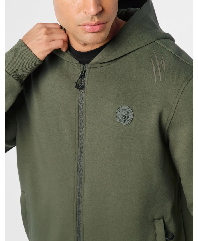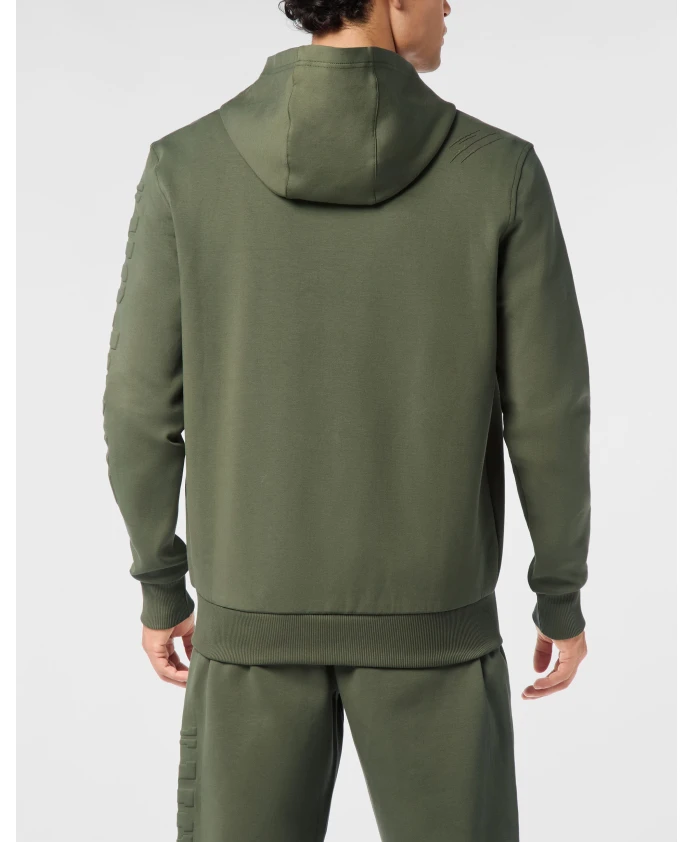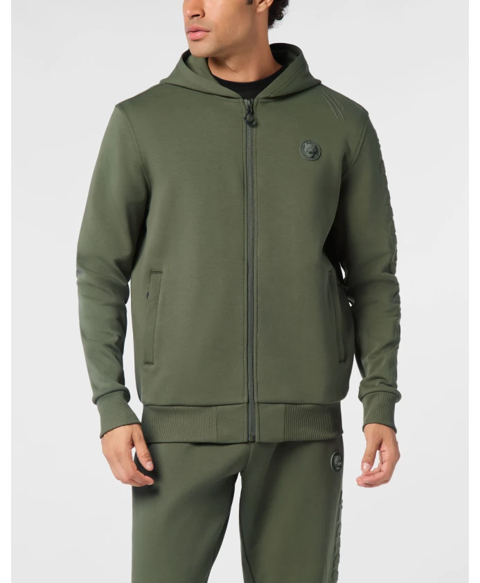 Толстовка Plein Sport Hoodie Sweatshirt Scratch - это хлопковая флисовая толстовка на молнии, предназначенная для активного отдыха и повседневной носки, с прорезиненными деталями Tiger Scratch. Ключевые особенности: Зеленый | Военный стиль | Хлопковый флис | Застежка на молнию | Два наклонных кармана на молнии | Ребристые манжеты | Прорезиненный логотип Tiger Scratch, вытисненный на левом рукаве | Нашивка на левой стороне груди | Капюшон на молнии | Графические элементы брендинга | Состав и уход: 88% хлопок | 12% полиэстер