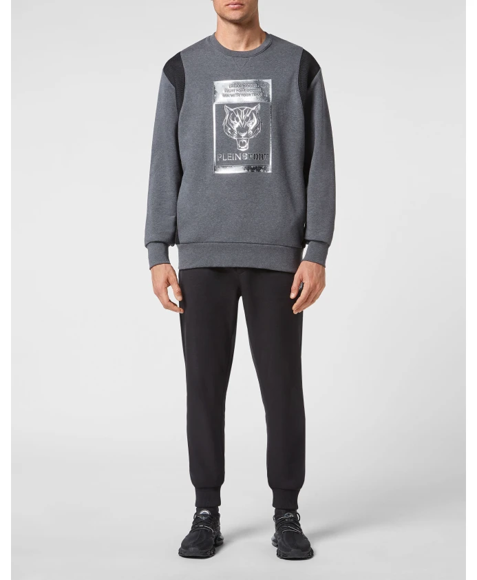 Толстовка Plein Sport Tiger с круглым вырезом предназначена для интенсивных тренировок. Она сочетает в себе эластичный хлопковый флис с цветовыми блоками и сетчатые вставки для дополнительной вентиляции. Ключевые особенности: Серый | Темно-серый | Хлопок | Эластичная ткань | Сетчатые вставки для вентиляции | Круглый вырез | Ребристые манжеты | Цветовые блоки | Тисненый тигр с ламинированным эффектом | Этикетка Sport Heritage напечатана справа | Размеры и посадка: Свободный крой | Состав и уход: 88% хлопок, 12% полиэстер