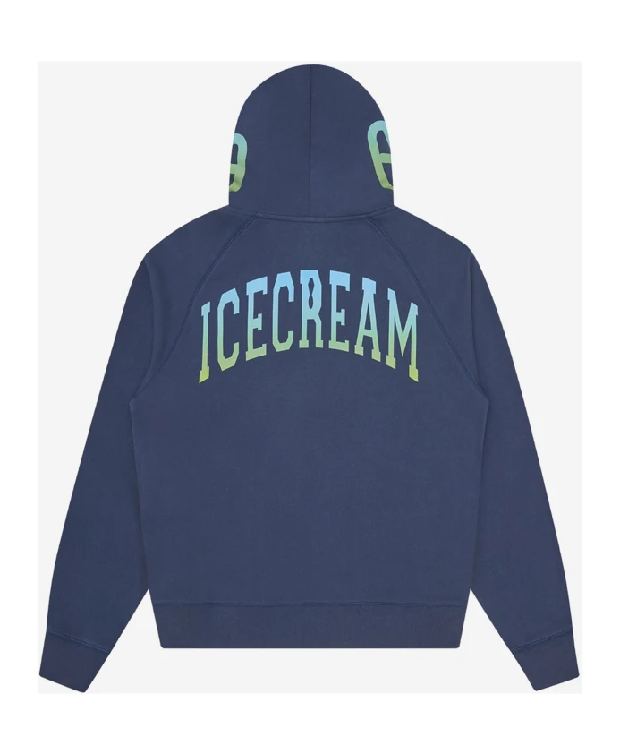 Оставайтесь стильными и чувствуйте себя комфортно в этой мужской толстовке ICECREAM на молнии. Изготовленная из 100% хлопка, эта толстовка имеет уникальный градиентный эффект смайлика на капюшоне, застежку-молнию спереди, вышитый логотип на груди и градиентный логотип ICECREAM на спине. Она также имеет два передних кармана, длинные рукава и ребристые манжеты. Доступна в синем и светло-синем цветах, эта толстовка произведена в Китае. Рост модели 185 см, обхват груди 94 см, талия 75 см, бедра 93 см, плечи 48 см, размер M.