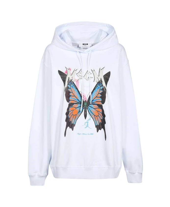 Хлопковая толстовка с длинным принтом Msgm, белый