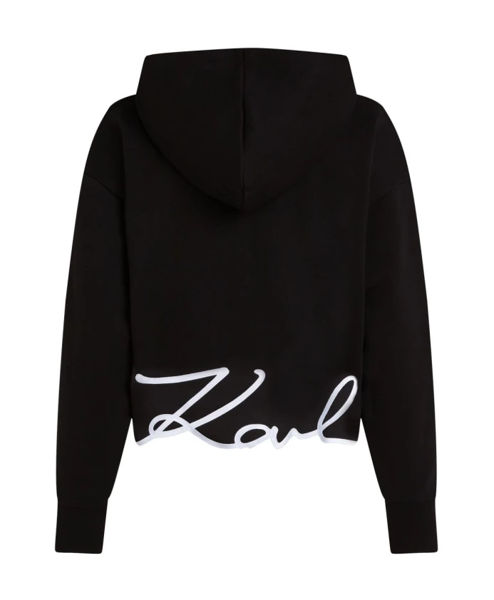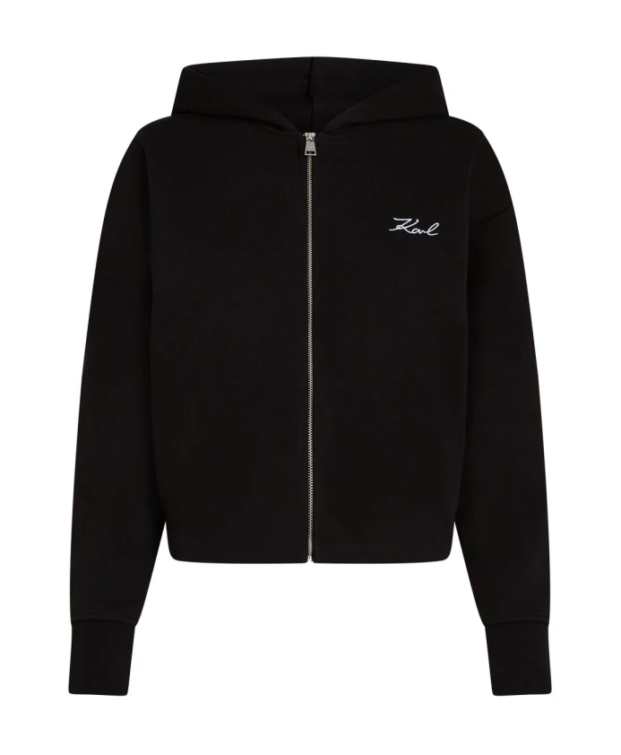 Худи Karl Lagerfeld Signature Zip-Up Hoodie - это обновленная версия классической толстовки на молнии с укороченным силуэтом и характерной вышивкой, создающая изысканный и непринужденный образ. Основные характеристики: Черный | Трикотаж | Передняя молния с фирменным язычком | Капюшон | Укороченный силуэт | Характерная фирменная вышивка на заднем крае | Минималистичный логотип на груди | Размер и посадка: Свободный, укороченный крой | Состав ткани и уход: 90% хлопок | 10% полиэстер